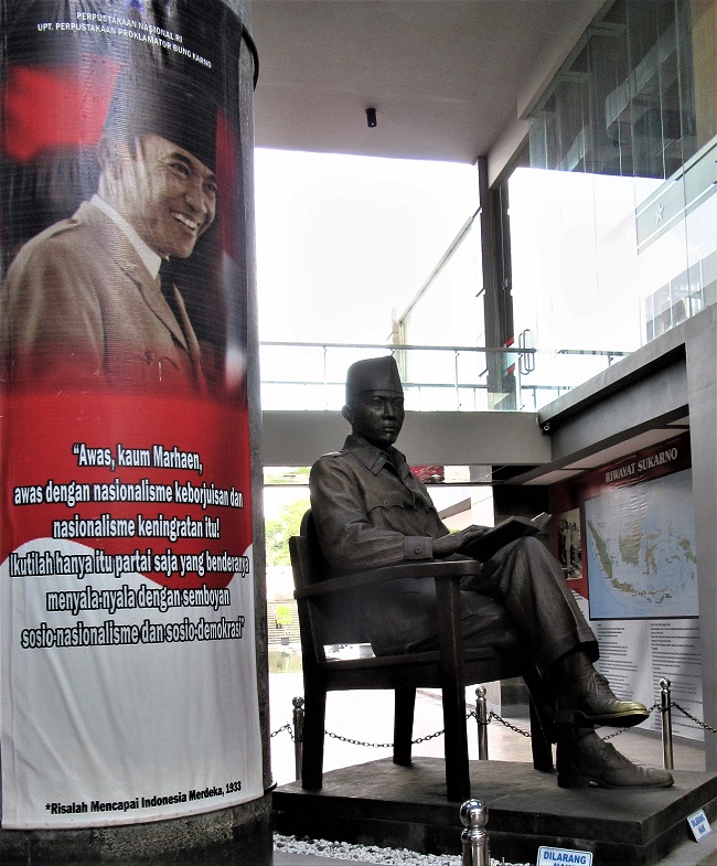 The third and final irony is to be found in how Sukarno’s legacy has been institutionalised. In recent decades various governments have attempted to formalise his influence. In 2003, partly in order to cope with the growing number of visitors, the mausoleum was considerably expanded and modernised in a joint effort between the national, provincial and district governments. And in 2004, by the initiative of the Blitar district government, the massive Bung (‘Comrade’) Karno Library and Museum was opened by the then president Megawati. As the official website declares, the purpose of these two buildings is to preserve ‘the concepts, ideas and intellectual legacy of Bung Karno as a national asset’.